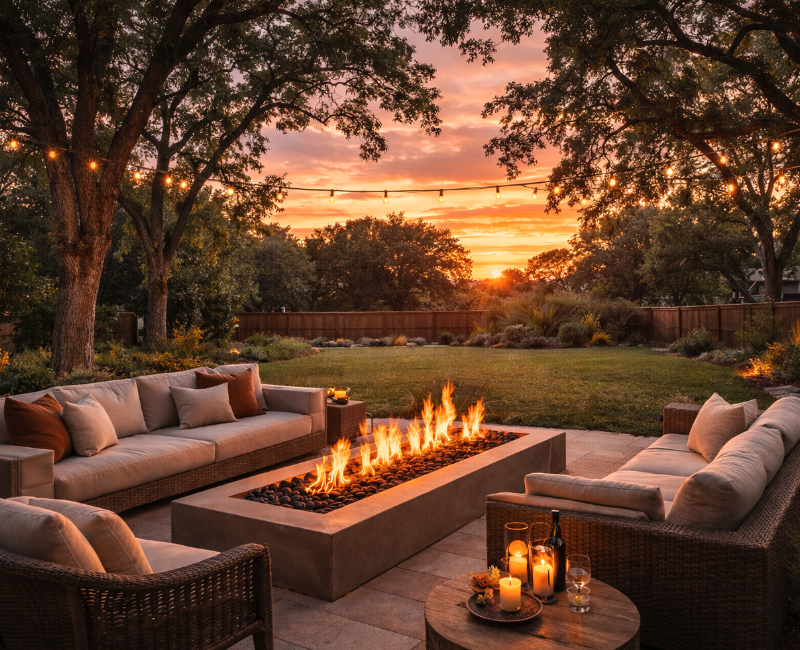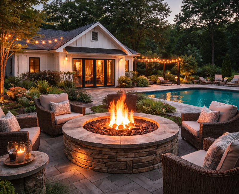 Fire features provide warmth, allowing you to enjoy your backyard during cooler evenings and colder months.